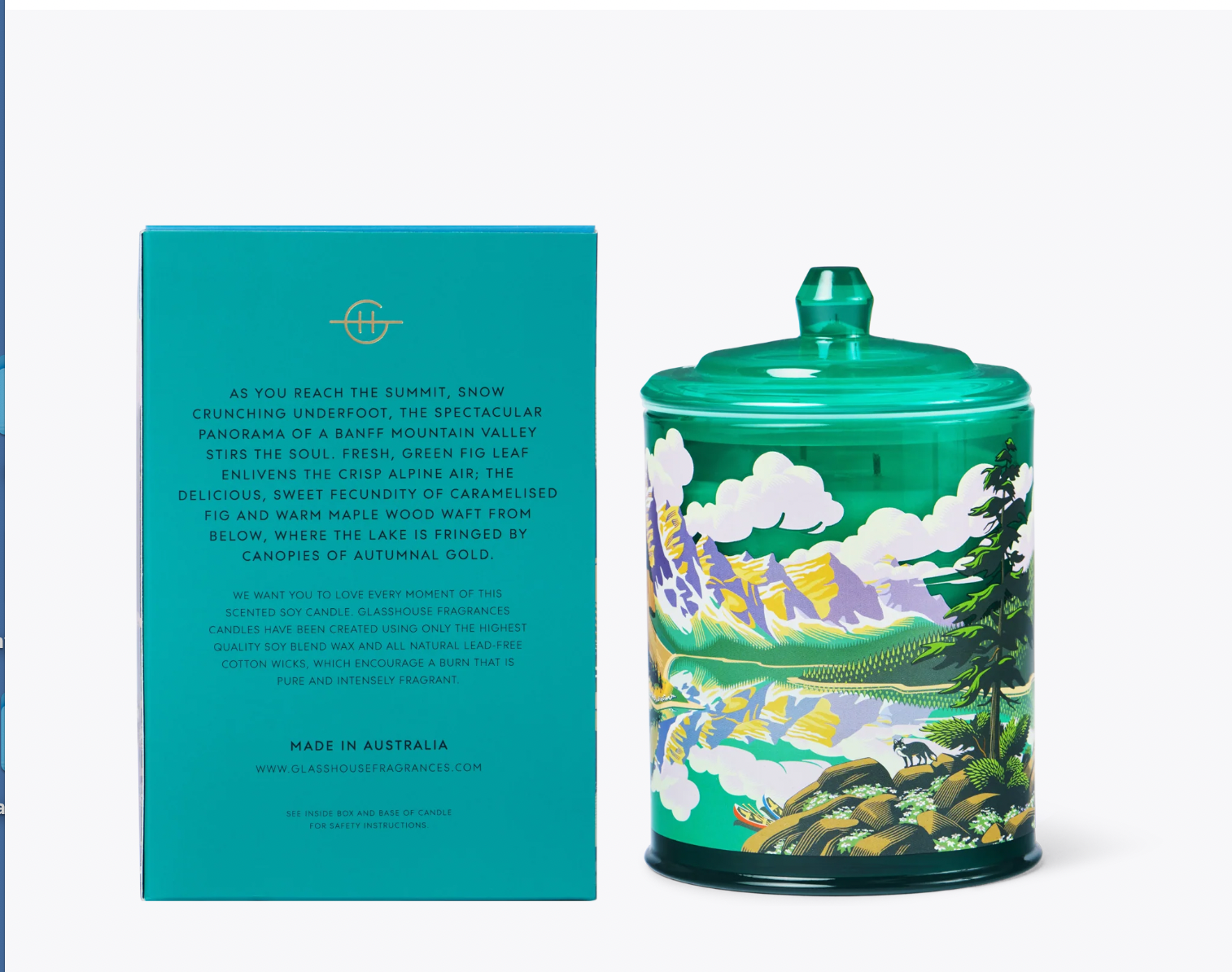 Glasshouse Breathtaking Banff - Maple Wood & Fig Leaf 380g Triple Scented Soy Candle