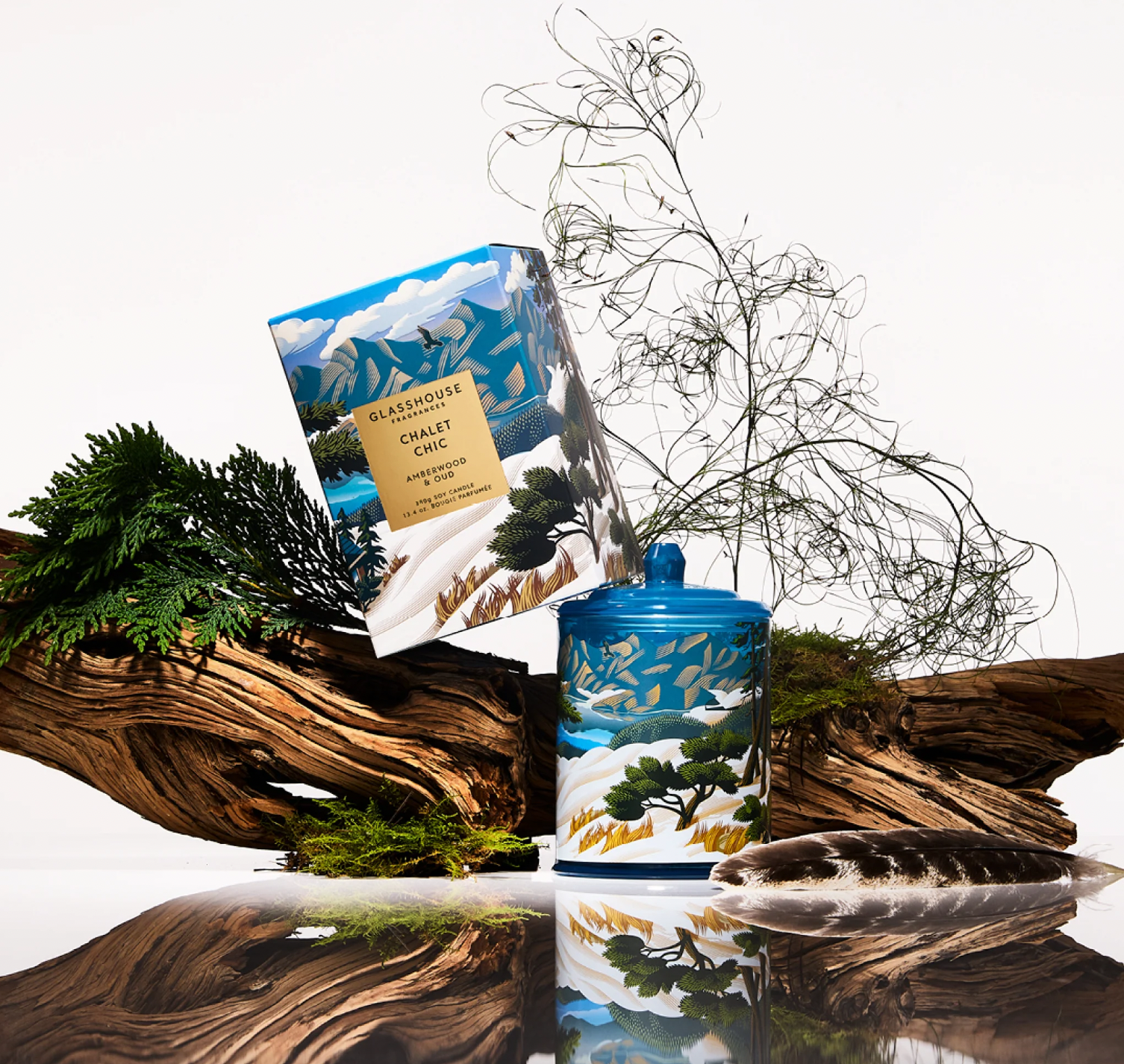 • Glasshouse Chalet Chic - Amberwood & Oud 380g Triple Scented Soy Candle